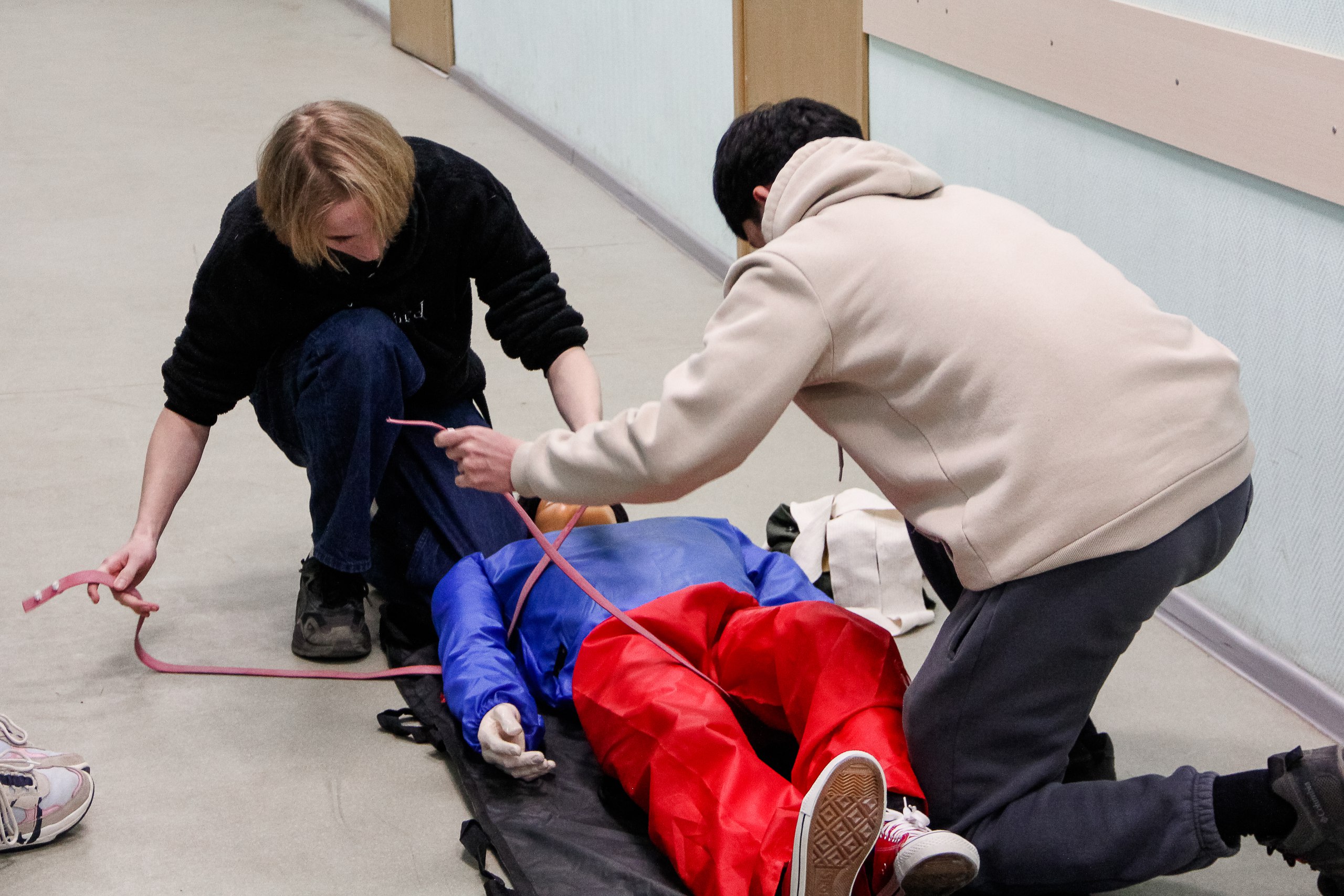 Состав команды: 2 команды по 10 человек от каждого учебного отделения. Каждый участник выполнял испытания в своей роли: