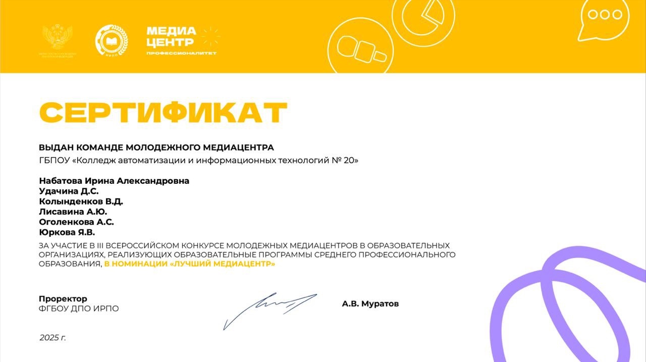 Ребята представили КАИТ-20 на конкурсе, который объединяет лучшие студенческие медиацентры из образовательных организаций среднего профессионального образования.