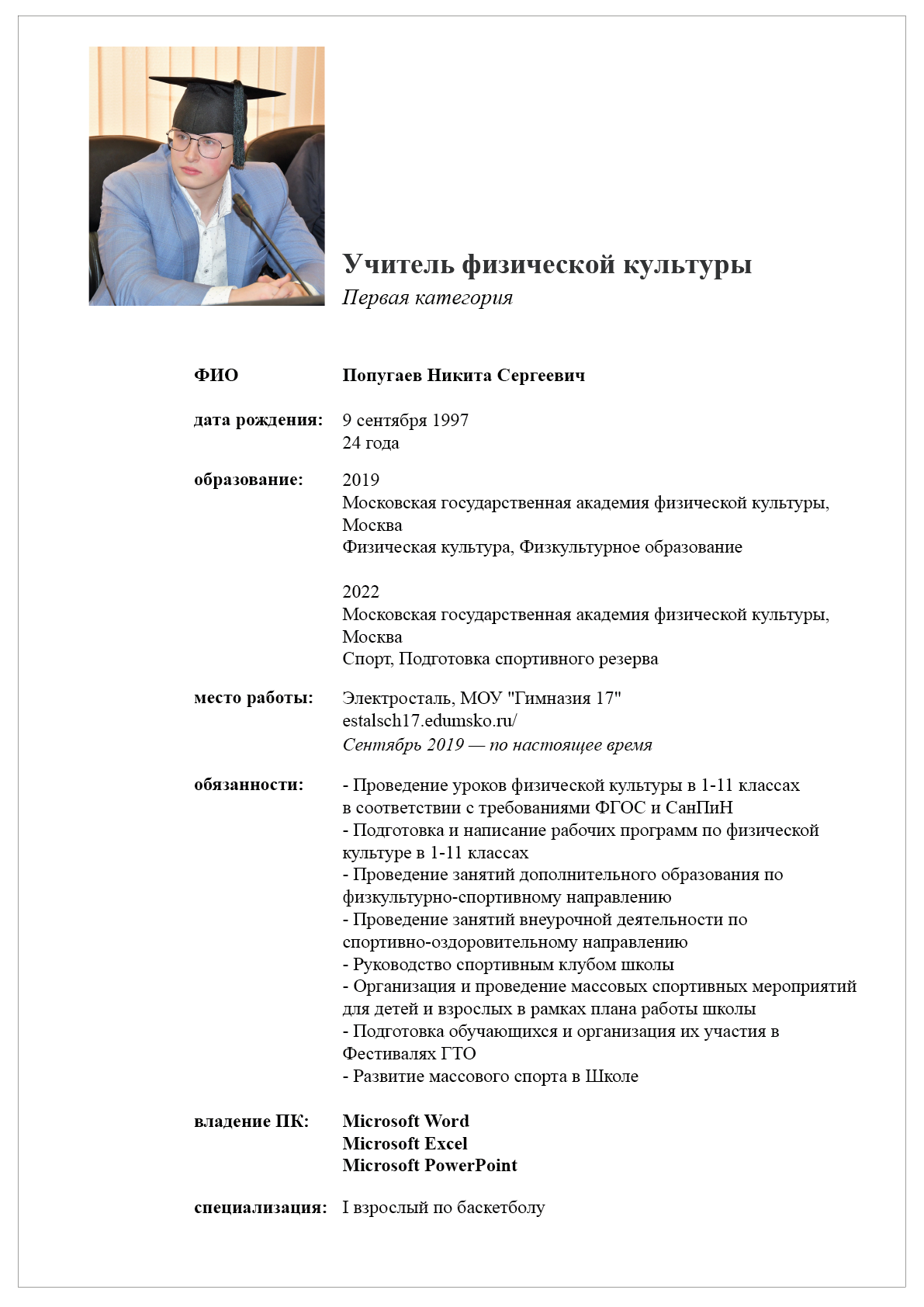 Добрый день, Никита Сергеевич. В настоящий момент вакансии по должности преподавателя физической культуры в ГБПОУ КАИТ №20 нет. Если такая вакансия появится, мы рассмотрим Ваше резюме и Вам перезвоним.